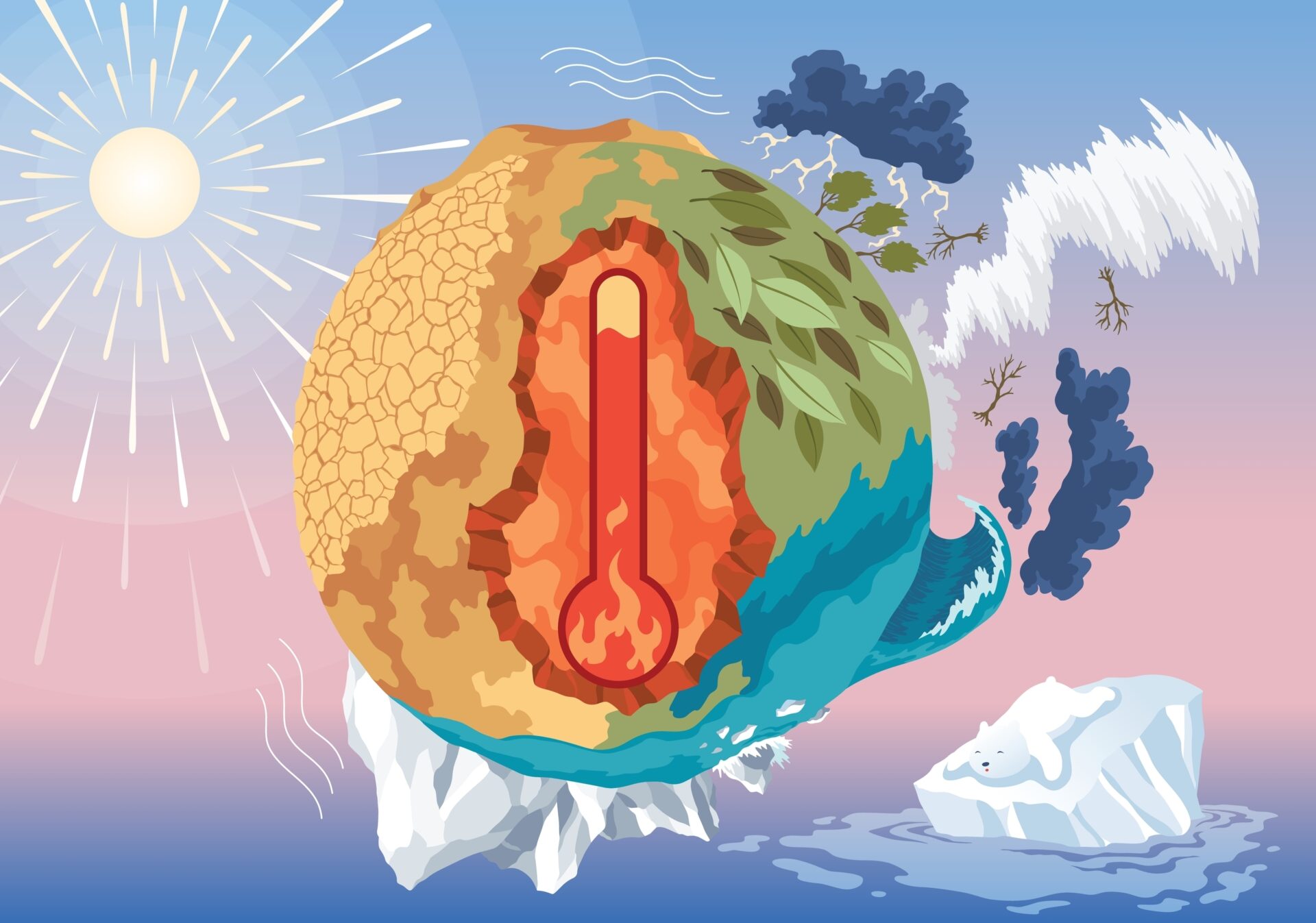 sugieren que las temperaturas promedio globales seguira?n creciendo hasta 6,4 °C para el an?o 2100, en el peor de los casos. Si eso sucede, los glaciares polares y las capas de hielo se derretira?n, y el nivel del mar aumentara?, lo que amenazara? las a?reas y ciudades costeras. Los glaciares que se derriten podri?an cambiar las corrientes ocea?nicas que dictan varios patrones clima?ticos.