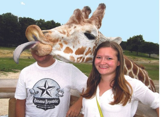 La jirafa toro Conan vive en un parque de aventuras en Estados Unidos y es conocida porque le gusta figurar, como en la foto.