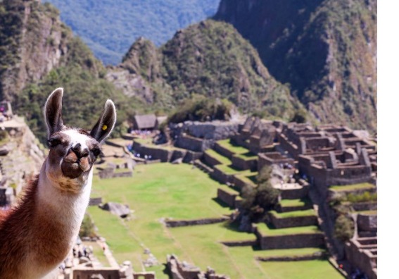 Dos íconos se combinan en esta foto, de forma inintencionada. Para muchos turistas, la fortaleza inca de Machu Picchu, en Perú, es visita obligada. También lo son las llamas, que a menudo sirven como animales de carga en esta región andina.